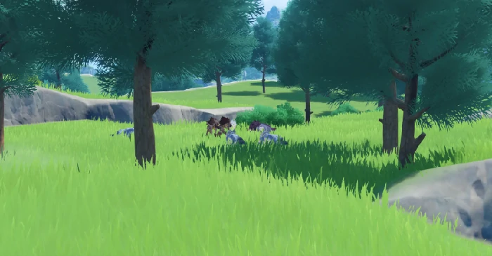 全图仅奔狼岭有野生狼类,可见灰狼群与精英狼。配冰/火系角色应对战斗,优先击破丘丘暴徒保障采集。稳定产出突破、天赋、烹饪三类关键资源,20-35级玩家高回报常驻探索点。