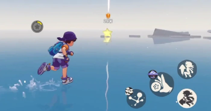 巨型星星拦路,要求归还礼物并进入战斗。战斗时必须长按攻击键持续释放星星魔法,破坏对方护盾。短按攻击键单次伤害不足,会延长战斗时间。重复正确操作,巨型星星认可掌握程度,正式授予星星魔法使用权。
