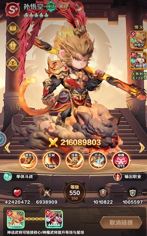 巨神军师手游中,孙悟空定位高爆发单体输出武将,机制复杂,成长潜力大。