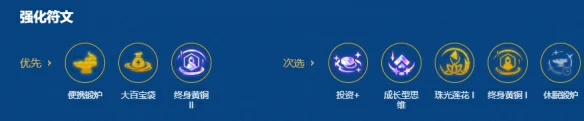 首符文抢经济类,加速囤金币;后续选战力提升、装备加成类,稳中期血量,铺后期强度。
