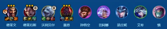 阵容主要英雄:德莱文、诺手、狗熊、赛恩、猴子、芸阿娜、猪妹、艾希、慎。