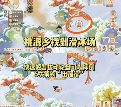 3、出溜滑:前往桃源乡参与滑冰玩法,滑行过程累计出现6次脚滑,获得成就。