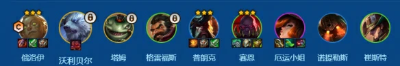 阵容成员:俄洛伊、沃利贝尔、塔姆、格雷福斯、普朗克、赛恩、厄运小姐、诺提勒斯、崔斯特