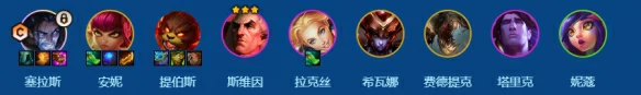 前期用6法师体系过渡,拉克丝未两星时,用其他单位带装备打工。8级启动搜卡,若血量健康,升9级后再大搜,拉高塞拉斯、拉克丝星级。