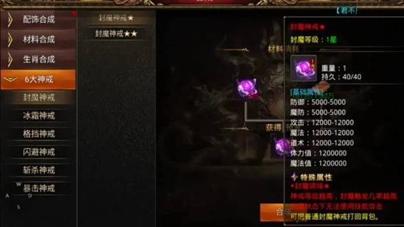核心机制提示:高等级神戒压制低等级/同类型同等级神戒(例:5级封魔压制5级及以下封魔),升级神戒直接提升实战压制力。
