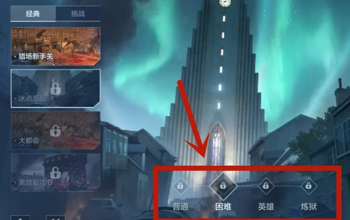 猎场模式核心玩法是僵尸猎杀,当前共开放四张地图。新手玩家建议从一级解锁的新手关卡开始,该地图难度低,方便熟悉基本机制。之后逐步挑战冰点缘起、黑暗复活节、大都会。每张地图标注推荐等级,按等级顺序推进游戏体验更顺畅。难度上,除新手关外,其余三张地图设四个难度档位。新手从普通难度起步,熟悉地图路线与怪物行为后,再提升难度。赛季系统解锁后,通过赛季征程开启折磨难度,给资深玩家提供更具挑战性的对战内容。对难度选择有疑问,参考地图推荐等级较稳妥。