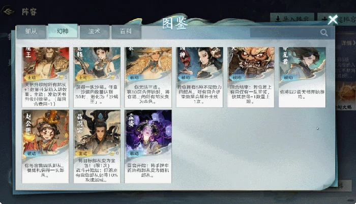 5. 牛魔王(天书/爆发):主动技能消耗8点灵石,强制触发所有已升级天书效果,全体部从加数量+1和战吼。得提前规划好天书升级路线,中后期资源够时用,能决定胜负。
