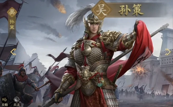 孙坚辅修选“不屈”和“续航”:兵力低于30%时“不屈”提供25%额外减伤,提高残局生存;“续航”每回合恢复8%兵力,实现持续作战。孙策核心输出,主修“毅勇无前”强化群体追击伤害,辅修“破甲”无视15%防御,“连战”追击后概率发动普攻,形成连续压制。