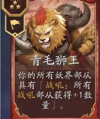 该打法核心围绕黄风怪、金翅大鹏、青毛狮王三张卡牌。黄风怪用战吼刷新天书、锁定妖族阵营,负责卡组检索与定向过牌;开局留一张找体系组件,其余替换优化手牌。金翅大鹏每回合按场上数量固定产灵石,保障中后期资源循环。青毛狮王给全体友方单位附加战后触发能力,泛用性高,各阶段都能核心增益阵容成长。