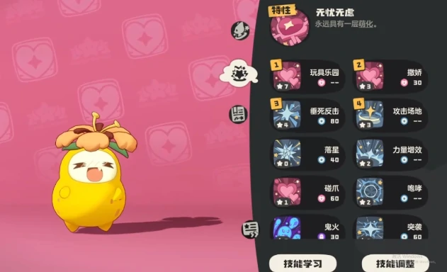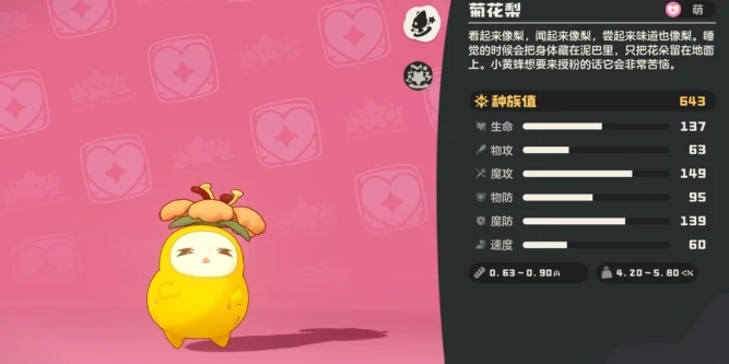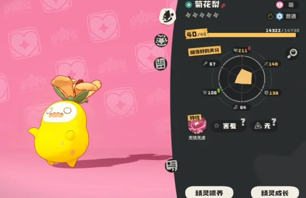 菊花梨,萌系辅助精灵,种族值侧重魔攻、速度,配招需按战斗环境灵活调整。凭借无忧无虑特性,玩法多变,以下从培养、实战解析战术价值。