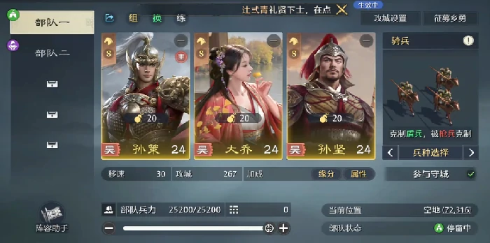 辅助首选貂蝉,技能机制契合连击体系:提供稳定增伤,通过概率加成提高普攻触发频率。战法建议搭配诸葛弩提升普攻命中,配合锋强化连击额外伤害;注重团队协同可选全军出击,统一行动节奏,保障输出环境。
