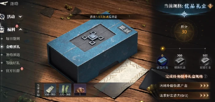 体力先推主线拿三星奖励,中午12-14点、晚上18-20点领120点免费体力,刷三次精英副本攒材料。