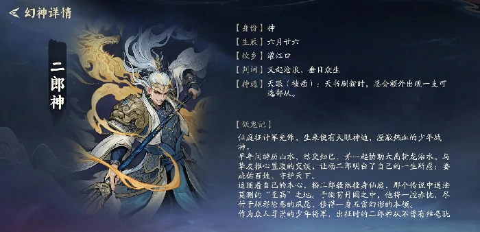 2、二郎神:运营型幻神,天书刷新多1个部从选项,提高拿关键部从概率,加速阵容成型,中期靠强度确立优势。