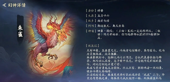 3、朱雀:远程输出核心,主动技能搜远程部从,加快阵容成型;战斗开场,全体远程+25%射程,敌人未近先打高额伤害。