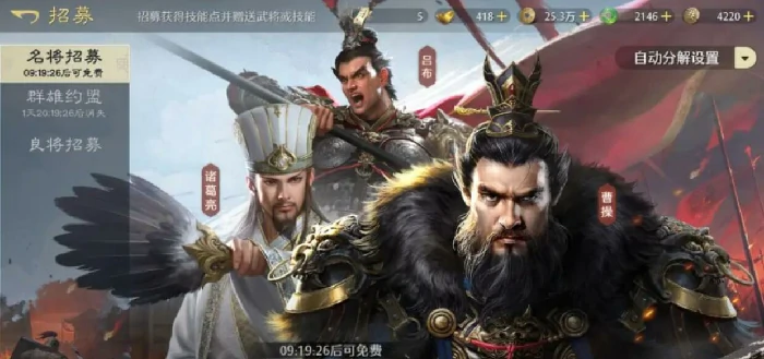 资源使用聚焦大卡池,关键武将多分布于此,保底机制稳定,易获影响战局核心角色,月卡、首充资源优先投入大卡池招募。