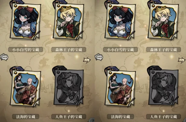 藏宝图设闯关模式,每张四主题大关(如人鱼王子、森林王子、法海宝藏),每大关含10小关,难度渐进不高。通小关立即得结晶、金币,前期核心资源,金币升角色、强化技能,结晶合成角色碎片,积累助力成长。