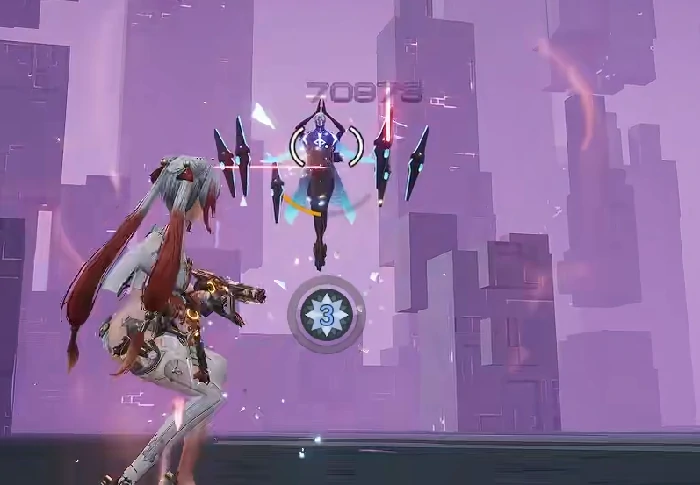 战斗界面底部设双环能量系统:外环镜晕值,普攻命中积累;内环溢光值。镜晕值决定常规技能释放形态,未满放基础射击,积满切换强力技型射击。