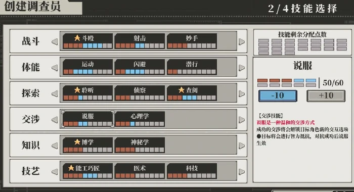 系统设计继承桌面角色扮演游戏经典规则:角色创建用卡车机制生成背景特质;技能系统围绕调查、说服、洞察等行为判定;职业选择影响剧情分支权重和可用选项;关键行动成功与否通过虚拟骰子检定决定。机制深度融入剧情关键节点,推动事件演变和多结局生成。