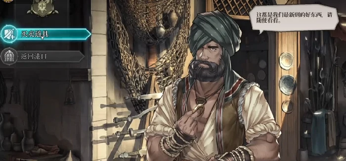 八大贸易港口,装备各有特色:武器、防具、工具、饰品。巴塞罗那:买匕首、布甲、礼帽、沙漏,主打轻便近战与基础护具。那不勒斯:购罗马短剑、皮甲、望远镜、瘟疫医生鸟嘴面具,古典军事风。