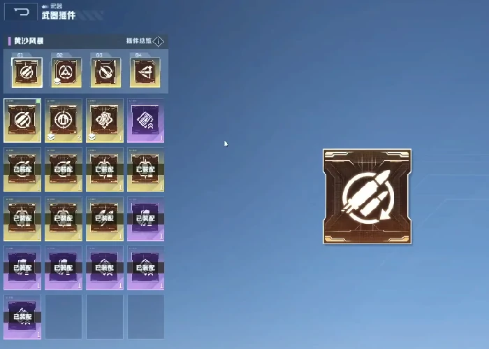 黄沙风暴最多装四个插件,推荐兼顾续航与爆发配置:快速填装插件跟狂热射击形成良好循环,减少火力中断;技能增幅插件强化两项主动技能效果;蚀速弹夹提升伤害,缩短换弹时间;临界射界插件改善中远距离弹道稳定性,扩展有效作战范围。