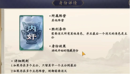 其他阵营含内奸、刺客等四种身份。获胜条件不同,内奸适时单独击杀主公,刺客完成指定目标击杀任务。这类身份随机性、变数高,考验玩家临场判断与时机把握能力。