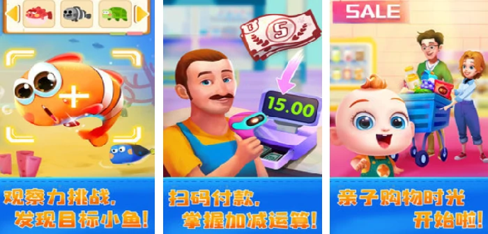 家长带娃玩亲子乐园,此游戏将乐趣搬至线上。家长陪孩子体验多种互动:共制特色美食,结伴虚拟超市选购食材。过程中,孩子认识常见蔬菜水果,模拟扫码付款学简单加减运算。游戏设考验观察力小环节,寻找观察小动物,培养耐心专注力。