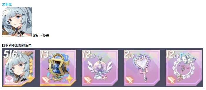 尤里娅:团队核心辅助,堆速度,次选攻击。选速度套装,附加属性叠速度,提升行动频率,强化辅助效果。