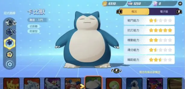 卡比兽是一个塔克类型,建议在搭配装备时选择突击背心、救援屏障,还有气势头带,技能选择有重磅冲撞,还有挡路。道具可以选择逃脱按键,还有伤药。在游戏中,卡比兽是一个最强的坦克,拥有简单暴力的范围,控场还有强悍的体魄,在任何的时间点都会有稳定的发挥。