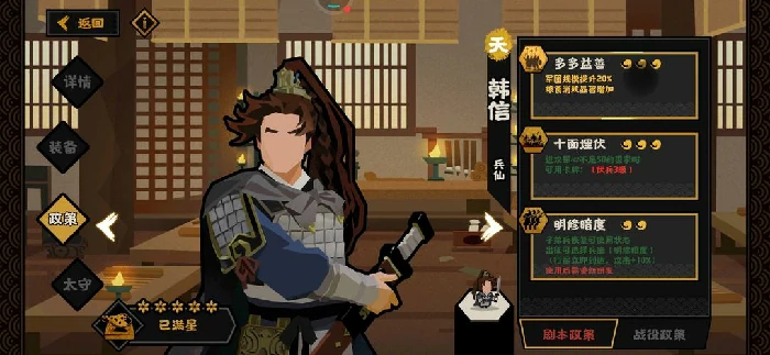 - 策略:稳固根据地,招募武将提升军队实力,利用地理与资源优势扩张,根据局势调整外交策略应对周边势力。