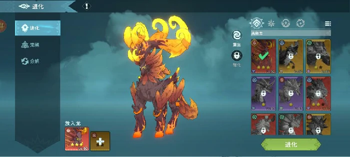 小龙战斗积累经验升级,满级后消耗材料进化突破升品质。低星进化要同属性同类个体,高星可用同属性同星级个体。精英一星龙重生可返还本体和培养材料,仅限初始精英级龙。为小龙装备6个槽位的装备并强化,提升属性。