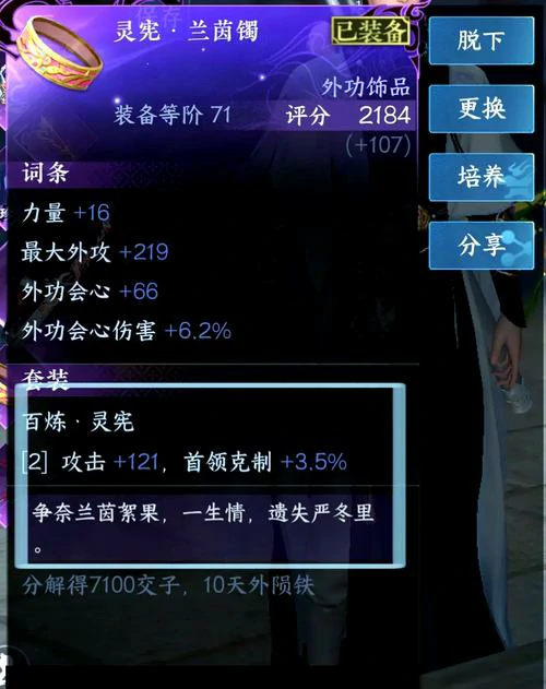 玩家对战时,第一段解控、位移、回复生命;第二段免疫精神类控制。应对绝技夺魄宝典,33论武、66比武大会中龙吟职业高频使用,冷却时间短,33、66玩法实用。