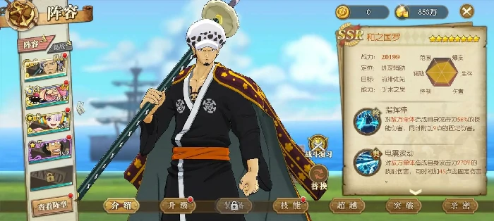 优化阵容配置:组建兼具输出、防御与生存能力的队伍。选用路飞、索隆等主力输出,搭配乔巴等辅助角色提供支援。