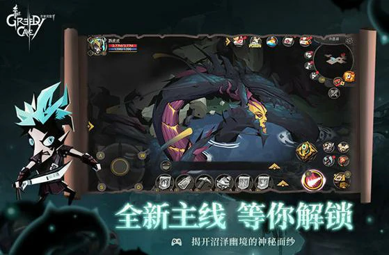竖屏操作,单手掌控,美术风格神秘诡异。上线获玩家认可,团队扩至30+人。续作贪婪洞窟2已推出,新增英雄、地图、副本及系统,与前作内容联动。