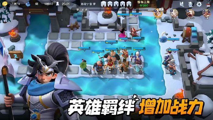 视觉表现:明快卡通渲染风格,角色场景生动,战斗技能特效醒目,增添策略部署观赏性。