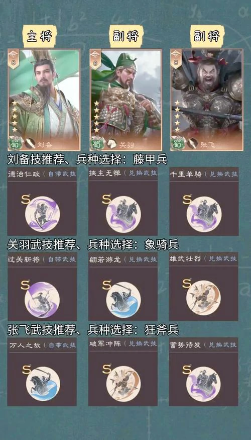 核心武将必选袁绍、公孙瓒。袁绍:群体攻击敌方全体,概率削弱对手攻击力;公孙瓒:提升我方全体弓兵攻击与暴击几率。可选武将:吕布(高额伤害)、貂蝉(关键控制)、华佗(稳定续航治疗)。