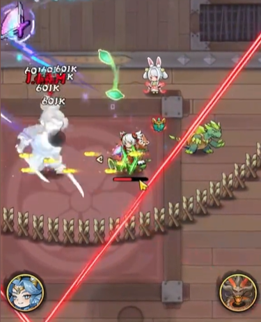 打完宫本之后,别高兴太早,这时会有一波绿色茎叶球的小怪冲出来。记住,这波兵来的时候,炸弹人也会凑热闹出现。如果你有“千里冰封”技能,这时候直接冻住炸弹人,省时省力。炸弹人被冰住后,炸弹引爆失败,基本上就算是帮你大大减轻了压力。