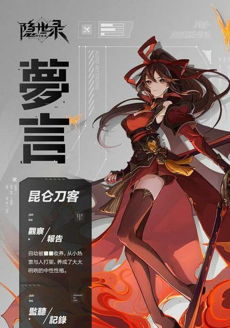 梦言:昆仑刀客,自幼被收养,性格豪爽,热衷武艺切磋,可发起战斗挑战。