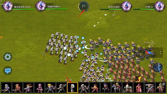 对战核心:向敌方基地派遣士兵。选择多类兵种,近战单位高攻低防,远程单位安全输出,灵活搭配兵种组合,升级提升整体战力。