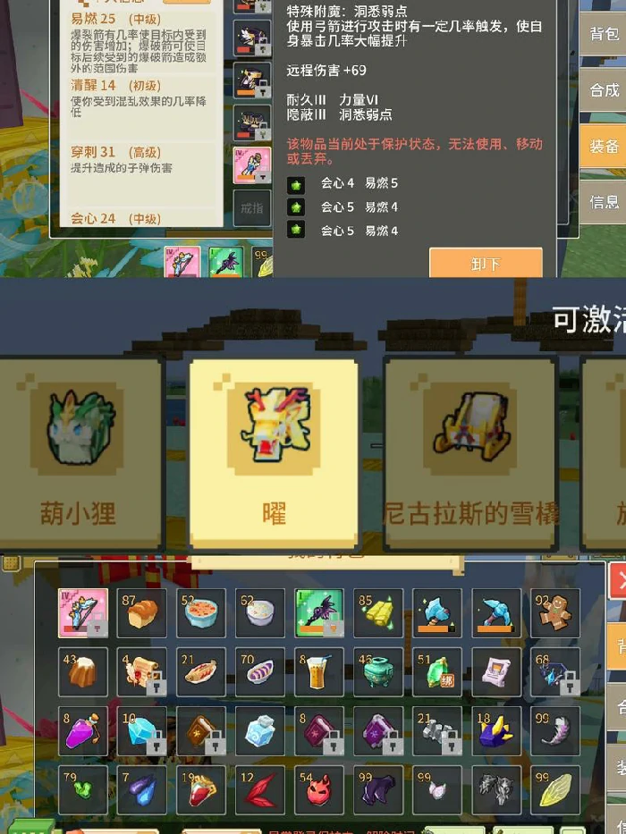 - 打造工具与武器:用矿石和木材造镐、斧、剑等装备,满足玩家冒险生产需求,成品销路好。