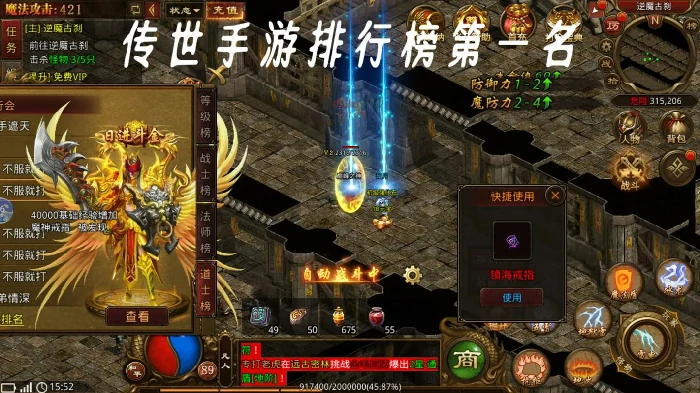 传奇世界手游,盛大研发,经典端游改编,角色扮演类。宏大世界观、多样玩法、独特美术设计,玩家热捧。