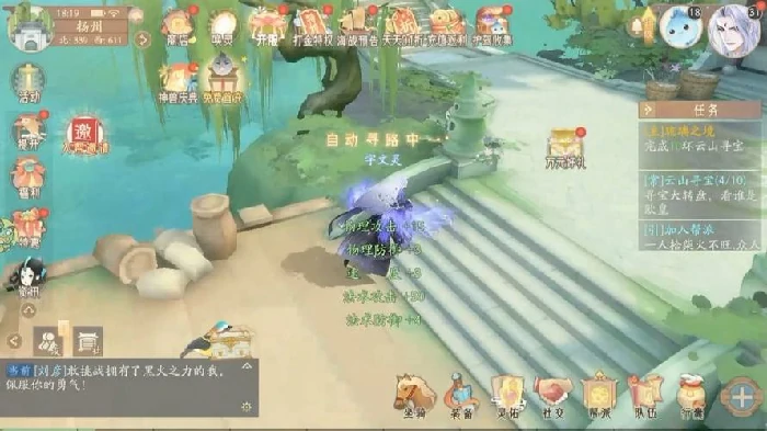 领取版本福利:2024年12月11日新版本上线后,玩家登录可从赵灵儿与于小雪中任选其一作为传奇护驾领取。同时可获得传说护驾四选一(含于小雪、李逍遥、赵灵儿、陈靖仇)、云山藏金称号、128充值卡五张、初见珍稀宝箱一个等开服福利。