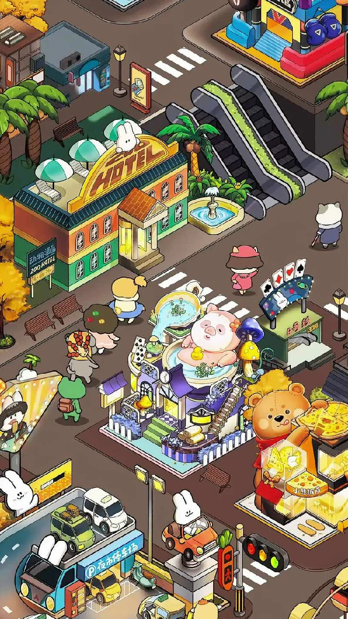 动物夜市:休闲模拟经营小游戏,长沙天创文化传播有限公司开发。玩家化身兔子丸仔,返乡经营夜市街。规划布局,开设美食摊点、娱乐设施,研发新菜品、新项目,满足动物顾客需求。赚取金币,升级店铺装潢与设施,提升小镇夜市知名度。