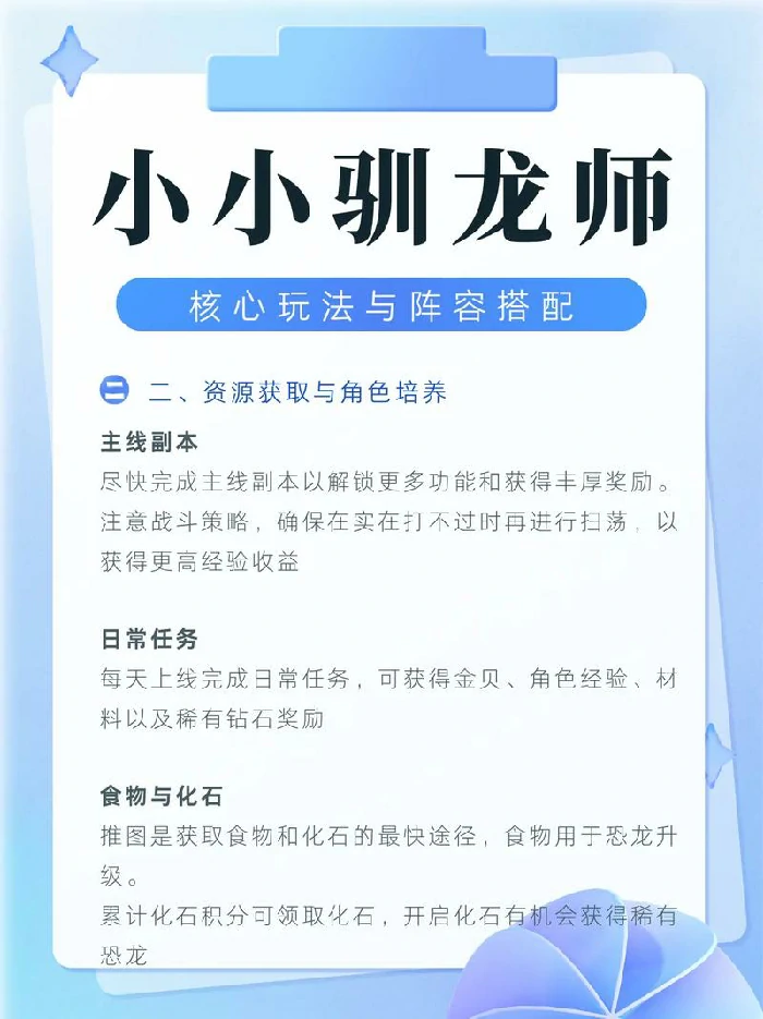 优先推进主线剧情!主线任务提供海量经验与资源奖励,逐步解锁新区域与功能,为驯龙之旅打基础。