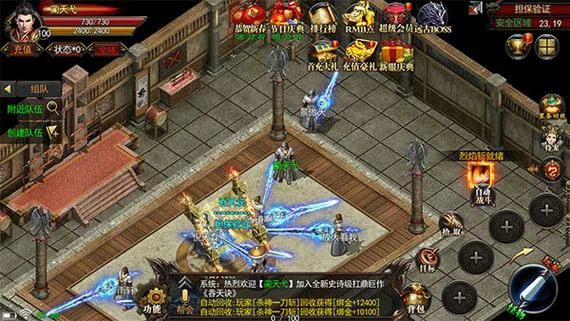 等级达标后,商城购道具创建帮会或直接加入现有帮会;利用帮会驻地主殿、商店、神兽等功能建筑,参与帮会护送、沙城争霸等集体活动,强化玩家协作与交流。