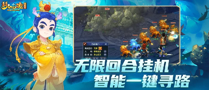 2. 精简优化成长体系:简化养成路径,精简召唤兽和装备系统,降低理解成本。开放自由交易与摆摊功能,促进游戏内经济资源灵活流动。加入无限回合挂机与智能寻路功能,降低操作难度,方便玩家利用零散时间提升或新手快速入门。