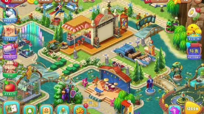 模拟经营部分:完成消除关卡,收集星星等奖励。兑换修缮和装饰花园材料。改造花园,体验故事。