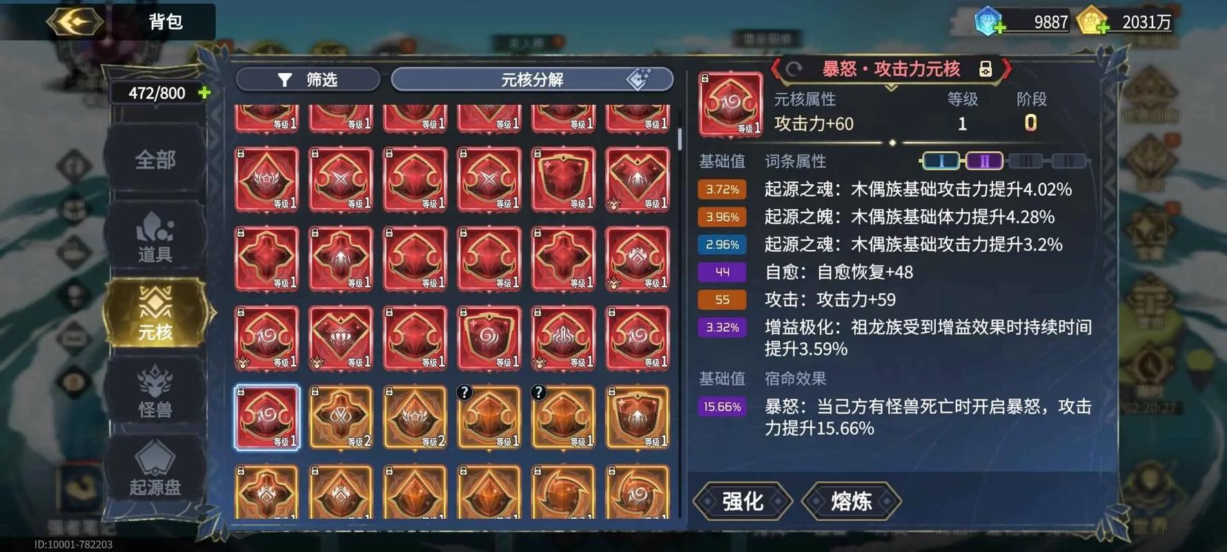 元核是提升怪兽战力的核心资源,橙色品质尤为珍贵,能显著增强队伍实力。