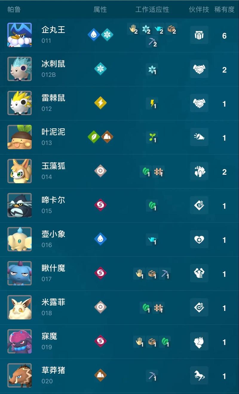 其他新帕鲁:妮瞅莎、梅莉姆、金驰兽、魅爱莉、艾基鲁迦、墨丸、净世鹿、面惧、桃蛛娘、驭雷马、霜牙王、幽焰狼、雪绒狐、郁木羊、艾小兔、霜镰魔、天阴童子、金棘兽、格鲁力斯、雷隐鹿、伊西斯、杰诺多兰等。多数在天坠之地陆地区域捕捉,部分可在早期地图区域找到。新地图捕捉难,可去等级较低区域寻觅。