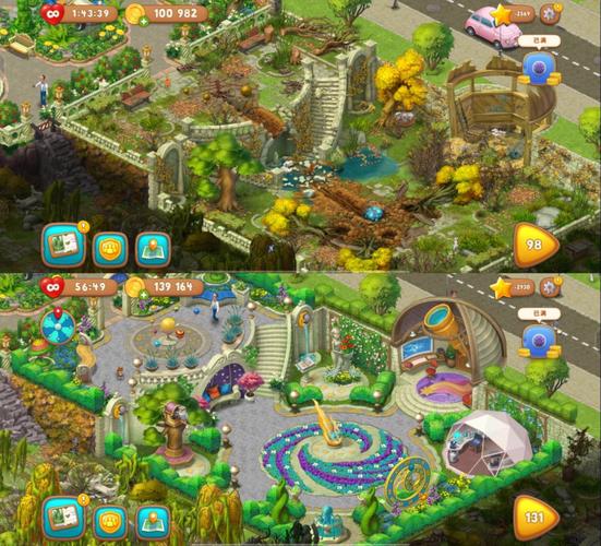 梦幻花园中,消除关卡获取星星,用于解锁修缮花园设施,喷泉是核心设施之一。
