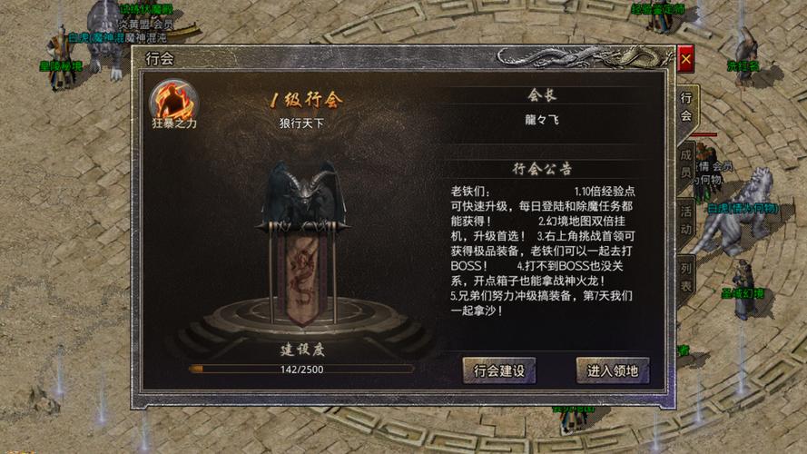 成员捐献金币增加行会建设度,建设度是提升行会等级的关键。